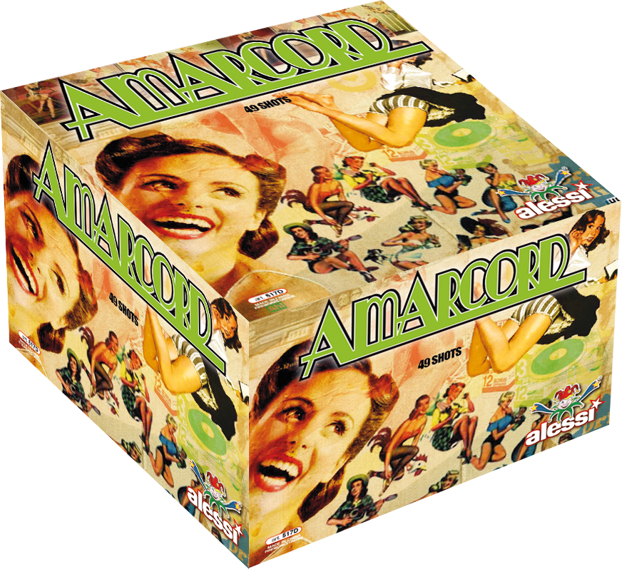 Fuochi d'artificio Amarcord effetto peonie multicolor, glittering argento.