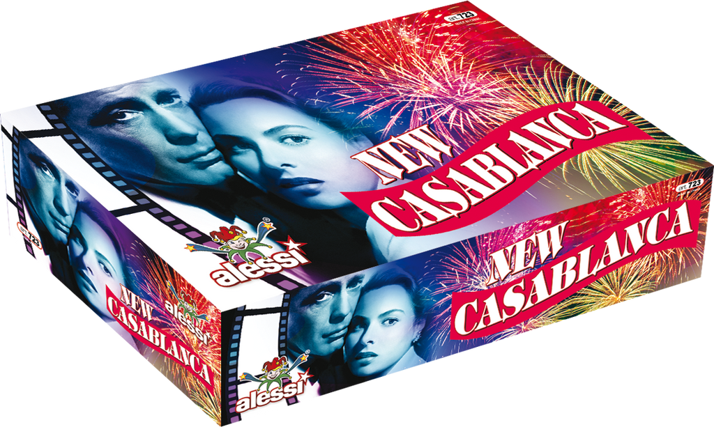 Fuochi d'artificio New Casablanca spettacolo multieffetti. Ultima fila 5 shots colori assorti, 5 shots scia argento e colpi